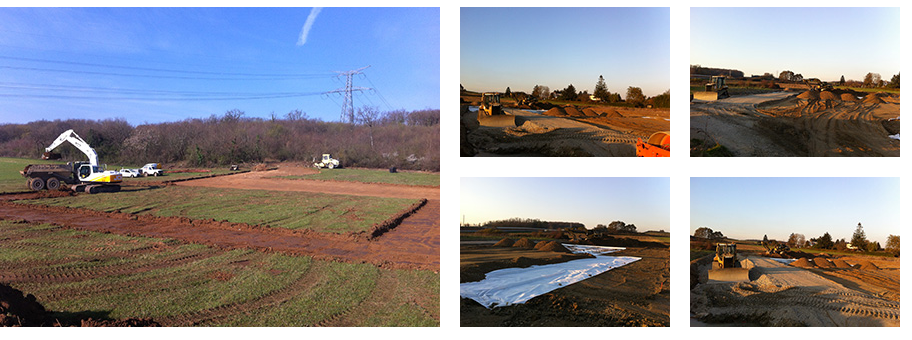 - Plateforme de bâtiments industriels ou agricoles, voiries, lotissements ainsi que pour des petits volumes (cours, chemin d'accès villas, remise en place de terres, extensions villas, piscine)